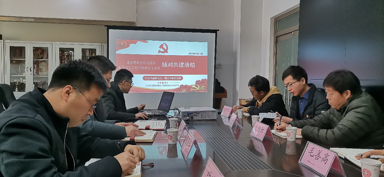 会后,电信开元体育中国官方网站教工党支部书记黎冠、建华高科公司党支部副书记何继红共同签订《党支部结对共建协议书》,就双方支部的组织共建、资源共享、队伍共建等内容达成了共识。