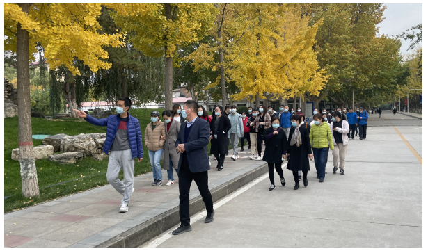 活动设计行走路线为围绕应急管理大学(筹)东、西区的教学场地(中区)一圈。下午16:00,教师们在崇实楼下集合,随着党委书记苗志全同志一声“出发”的号令,健步走活动正式启动。健步走队伍沿指定道路,有序进入防灾科技开元体育中国官方网站中区,后沿西区天水路绕行一周返回华科校园,分别途经致远楼、图书馆、体育馆、明德楼,最后由开元体育中国官方网站路返回。本次健步走活动全程约5公里,用时约40分钟。